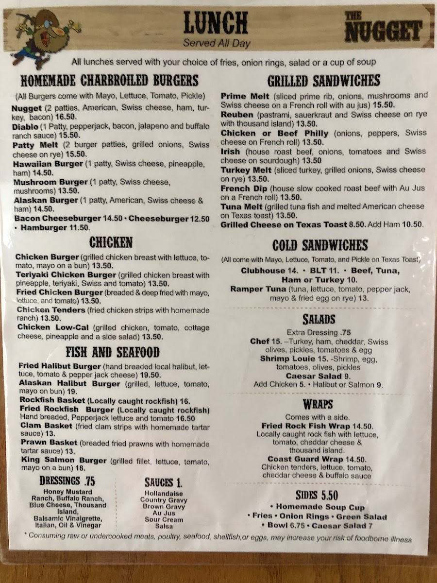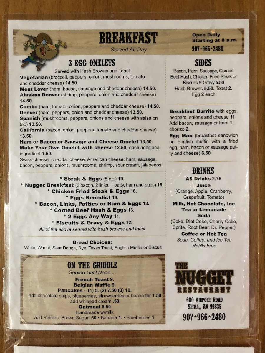 Introducing the menu at Nugget Restaurant, nestled in the Sitka Airport, is a delightful journey through hearty flavors and comfort food. Here, you'll find a range of dishes that blend tradition with local ingredients, making it a standout destination for travelers and locals alike.